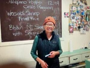 A delightful spry woman of 74 greeted us. She worked as chef, owner, waitress and dish washer. Our chef, whose name I could not catch in three tries, met an American in her native Saigon in 1974 and has been in Alaska ever since.